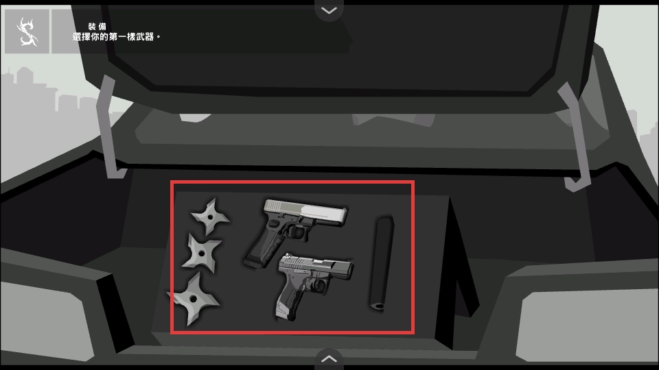 4、在装备环节,从飞镖、手枪等武器中选择第一样武器,为刺客配备,助力战斗。