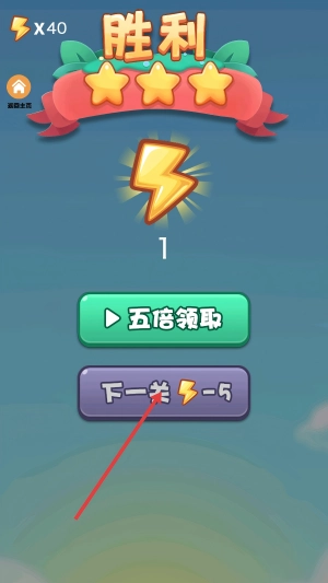 胜利之后点击【下一关】,消耗闪电,继续进行挑战,提升通关数量。