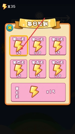 点击【第一天】按钮,即可获取当日签到奖励,逐步积攒闪电道具。