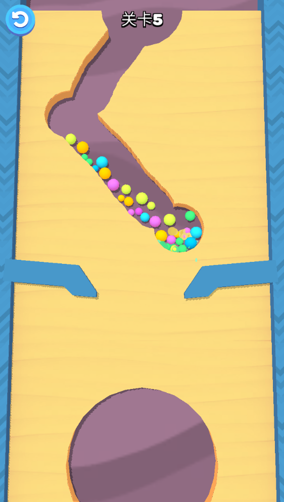 在游戏里,滑动屏幕就能拨开沙子,让彩球下落;彩球碰到白色球时,会把白色球染成彩色。