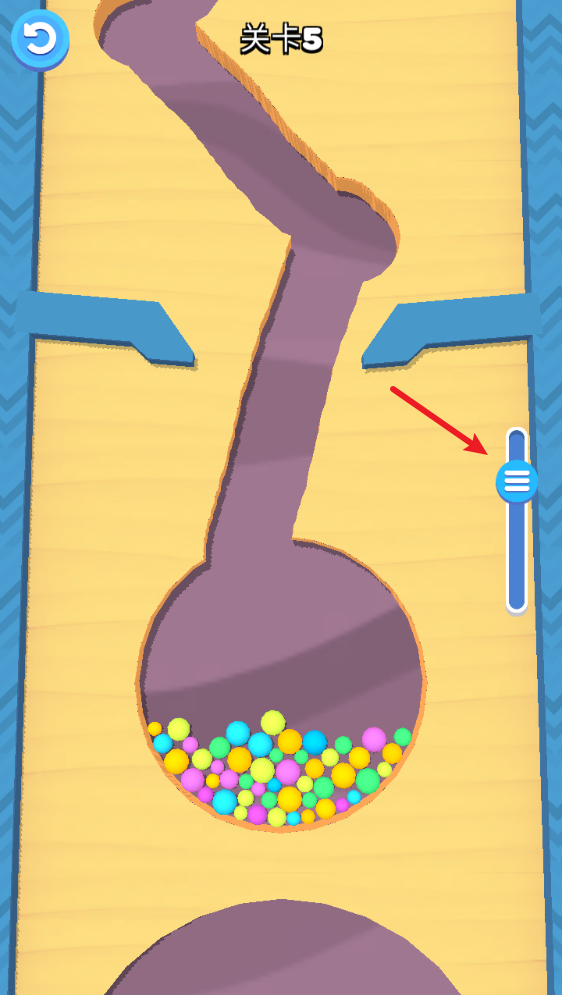 2、过程中点击右侧的拉杆来上下移动,确保上方没有遗漏小球。