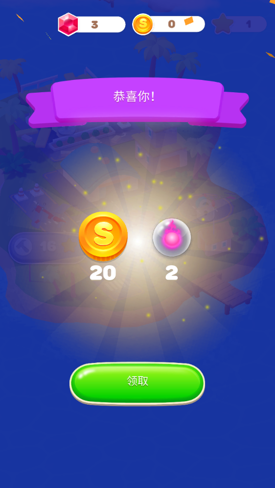 1、持续完成完美过关来收集星星奖励,用这些星星能够建设属于你的小岛,还能不断开拓更多地盘。