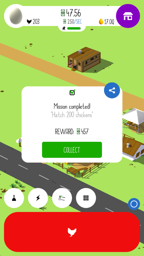 2、攒够足够的财富去升级鸡舍,还可以建造更多鸡舍,这样能容纳更多小鸡,收益也会随之大幅增加。