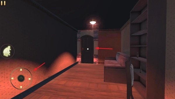 左边的虚拟轮盘能操控人物移动,你需要用它来打开那扇门。不过要留意,门后藏着敌人,他们随时可能发起攻击。