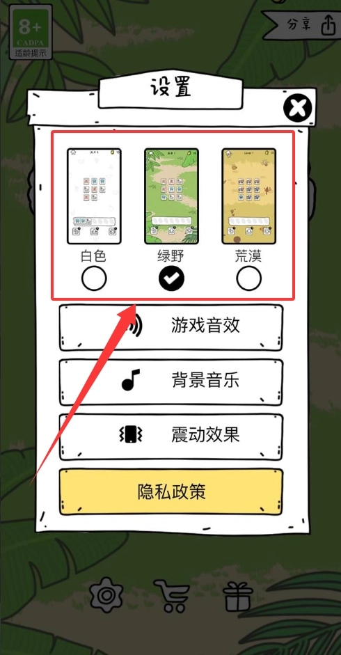 游戏首页点击左下角“设置”图标。