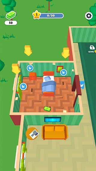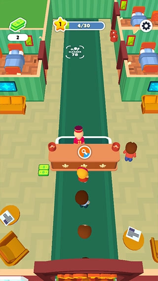 3、安排好房间给客人,他们住完后,需要及时清理打扫,才可以继续接待客人,移动小人靠近待清理的地方,就可以自动清理了。