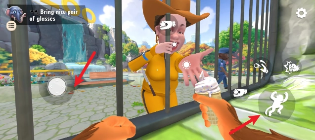 在游戏里,我们能借助左侧的摇杆操控猴子移动,点击右侧区域则对应着各类交互操作与动作指令。