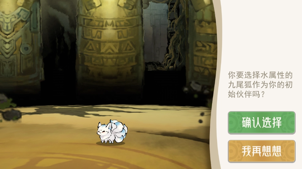 3、游戏刚开始我们需要在三种初始灵兽中选择一位,属性分别为水,草,火。