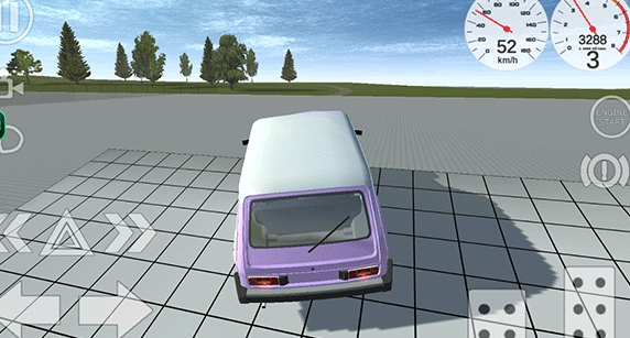 3、进入到驾驶场景当中了,包括录像、大灯、转向灯、启动等按键,我们可以通过左下角的左右控制车辆移动的方向,通过右下角【刹车】后退和【油门】前进按钮来控制车辆的速度,