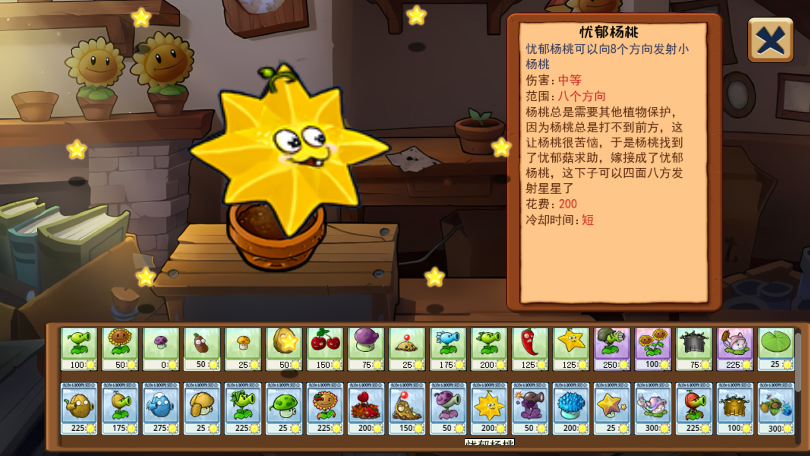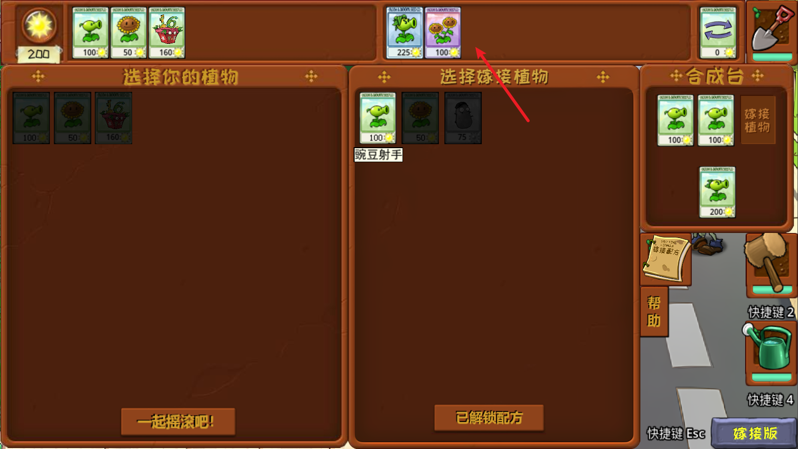 4、正式开始后,我们种植植物后,点击该植物即可继续消耗阳光对其进行嫁接操作。