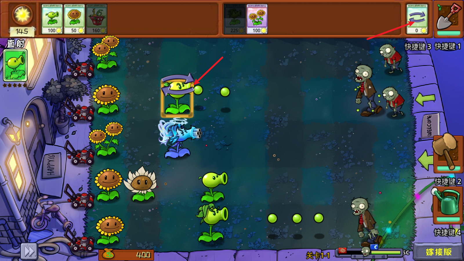 5、例如这里就将两颗豌豆射手嫁接成为了双发射手