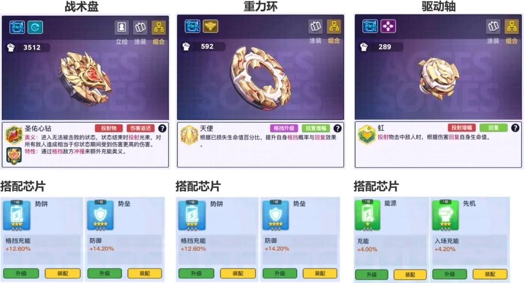 2.加攻击/生命值/防御百分比的芯片针对的是单一配件,而不是整体陀螺;且不会对直接增加数值的芯片再重复加成。
