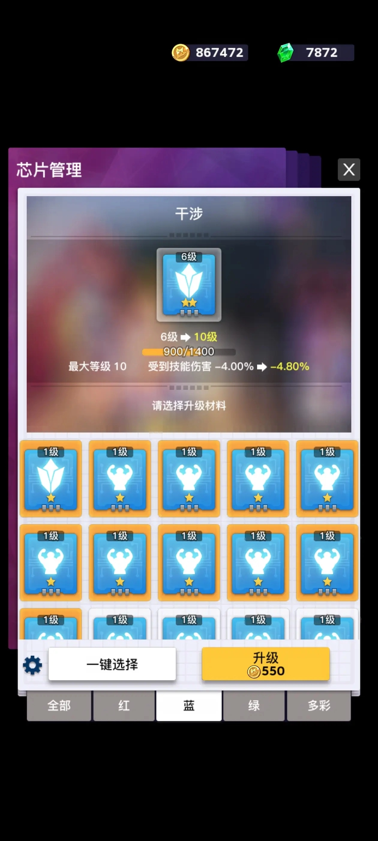 4.1彩色芯片:用于普通芯片的进化,当一个芯片升级到了等级上限后可以使用2张彩色芯片进行进化升星。进化后芯片等级不会改变,芯片效果会增加。