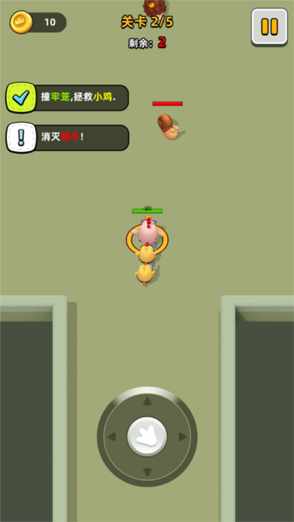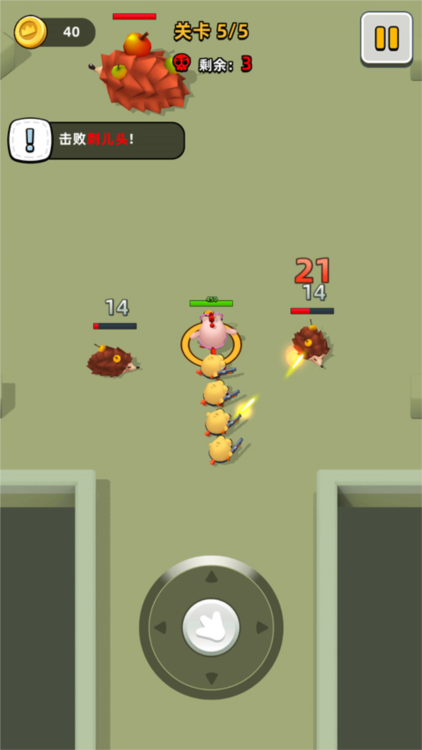 2、进入游戏后,通过滑动屏幕操纵小鸡自动攻击敌人;