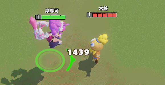 3.技能2旋风斩,高速旋转武器,对附近敌人造成多段伤害和击退,最后击飞。