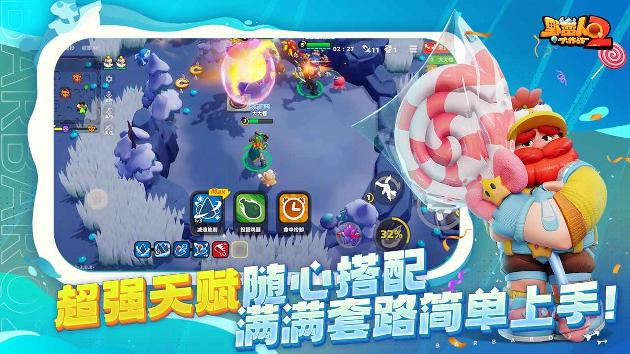 野蛮人大作战2最新版可以让你变身魔王,还有野蛮ip超强进化,赶紧来线上约架吧。随机天赋赋予每局不可复制的策略乐趣,魔性道具打破传统竞技的严肃框架,而多样的玩法实现了“五分钟一局”到“上头沉浸”的延伸。