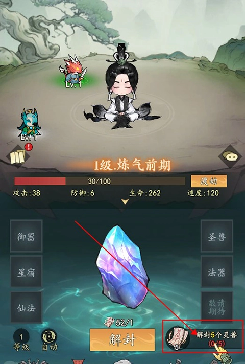 玩家进入游戏后,需点击灵石完成解封操作,以此获取灵兽。