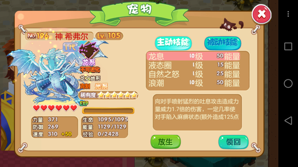 根据宠物等级进行技能学习、替换和升级,自由组合战斗风格,打造属于自己的最强战队。