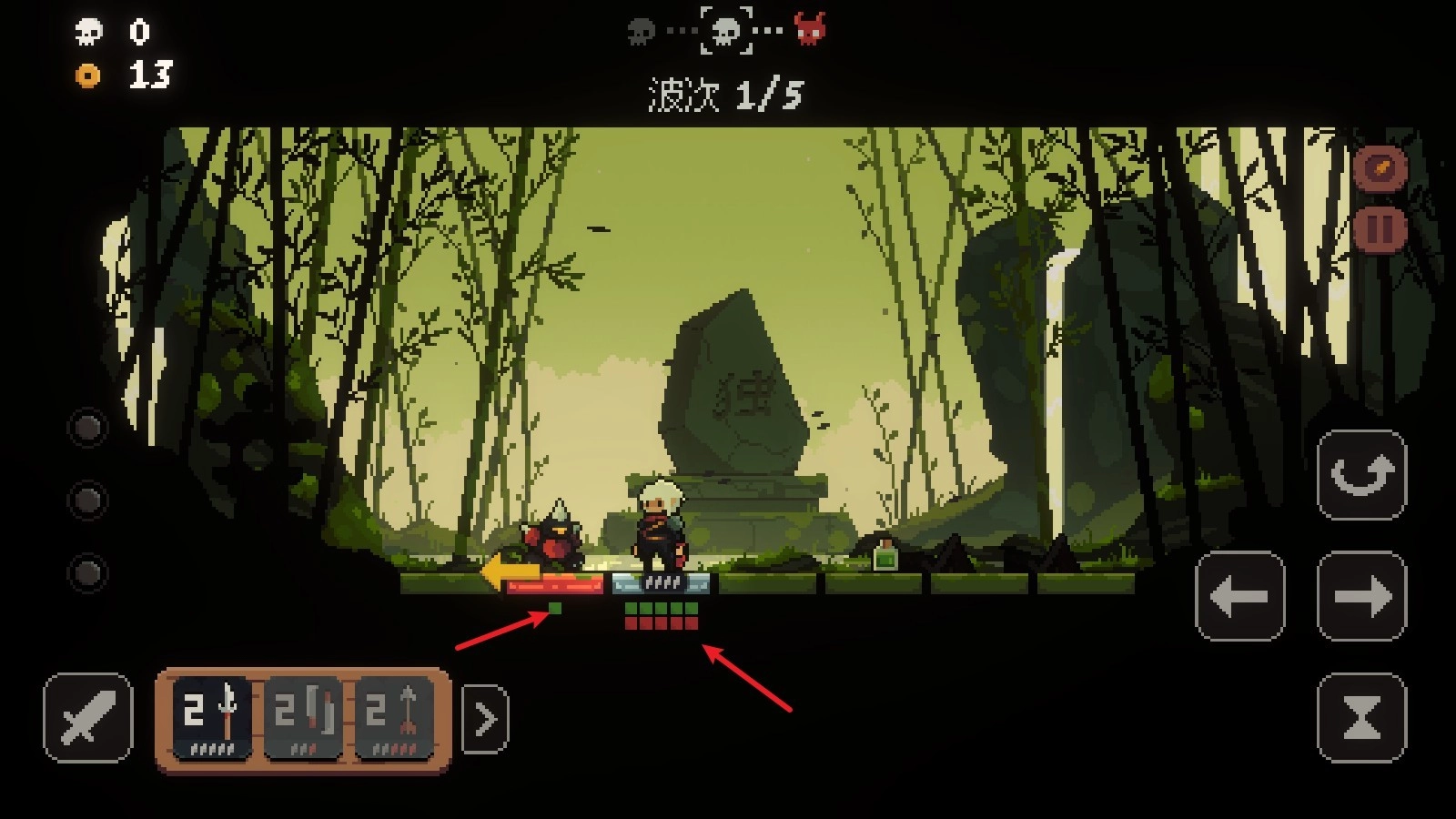 5、角色下方的绿色格子代表生命值,只要通过攻击把敌人的生命值打至零,就能成功将其击败。