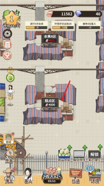 1、在起步阶段,运用启动资金解锁基础摊位,为后续经营筑牢根基。