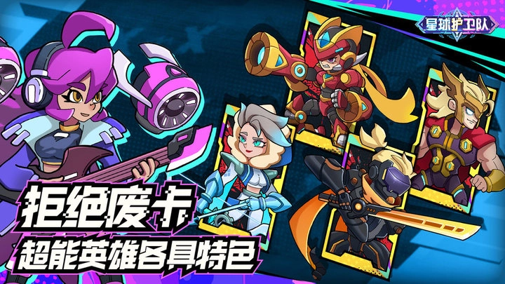 《星球护卫队》是一款星际朋克风格的卡牌塔防游戏,背景设定在未来科幻的星际宇宙之中。游戏打造了独特的星际朋克美学,讲述了一群具有朋克风格的超级英雄们守护星球的冒险传奇。玩家将带领多位英雄角色,这些角色融合了人、神、魔、机甲等多元设计元素,开启一场与外星怪物展开激烈对抗的战斗征程。