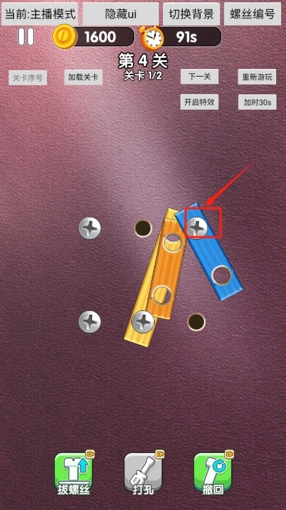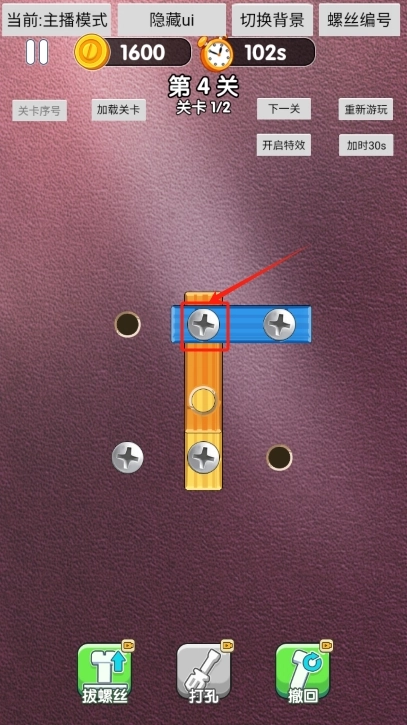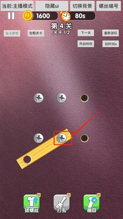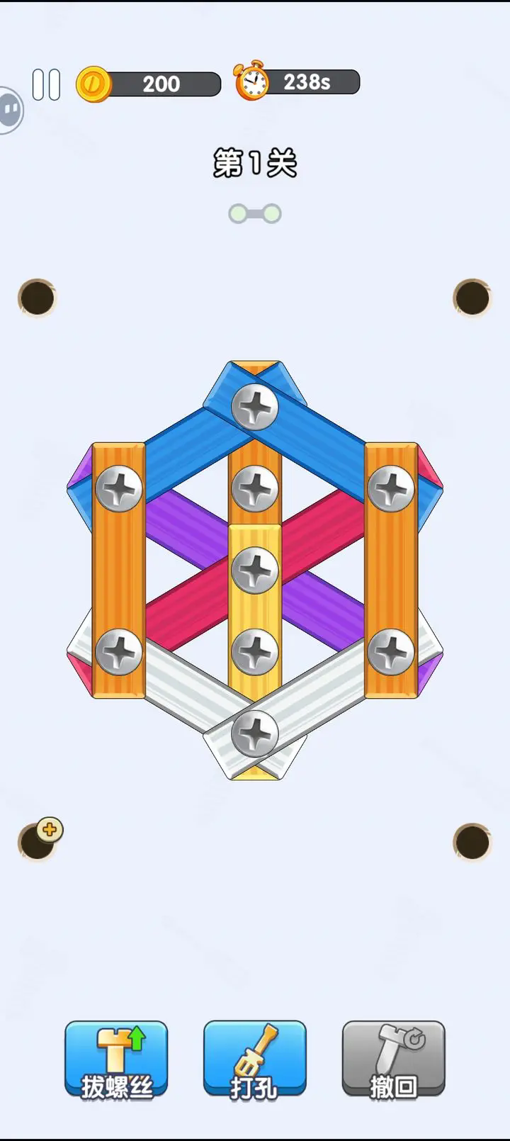 1、点击左上角螺丝,将其移动至空闲孔洞