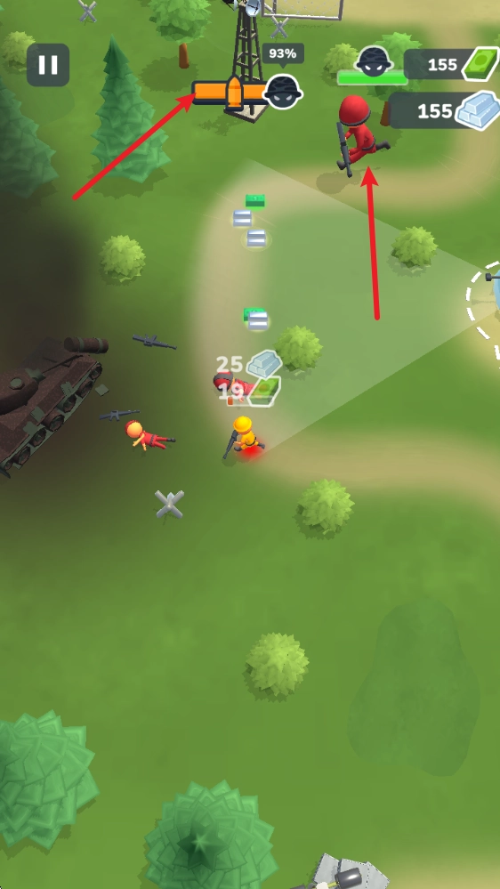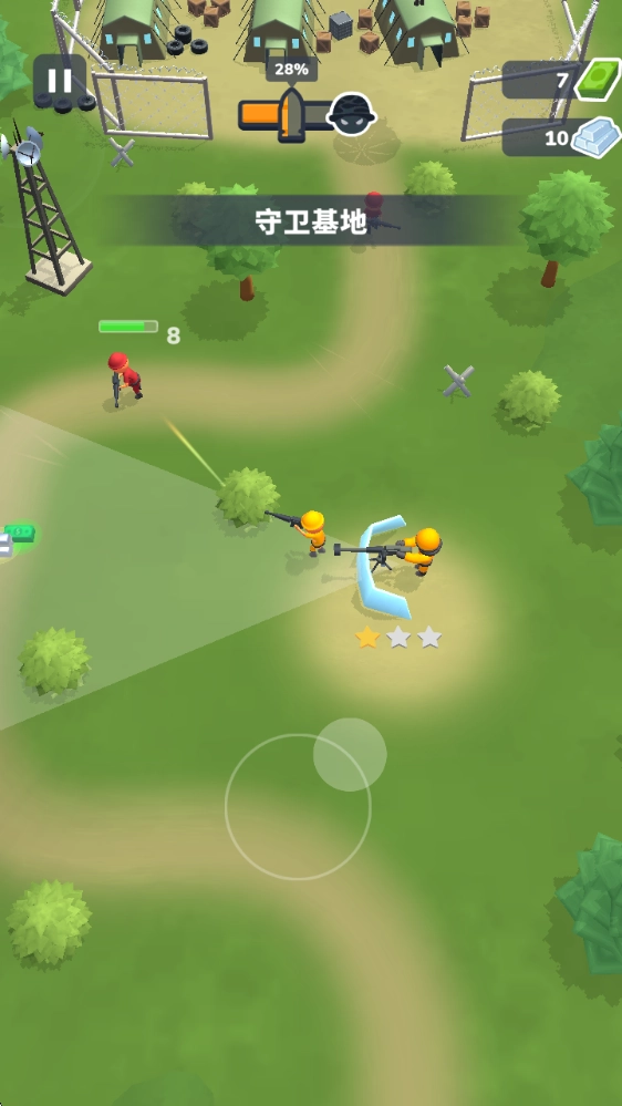 1、游戏中拖动屏幕即可控制自己的士兵进行攻击。