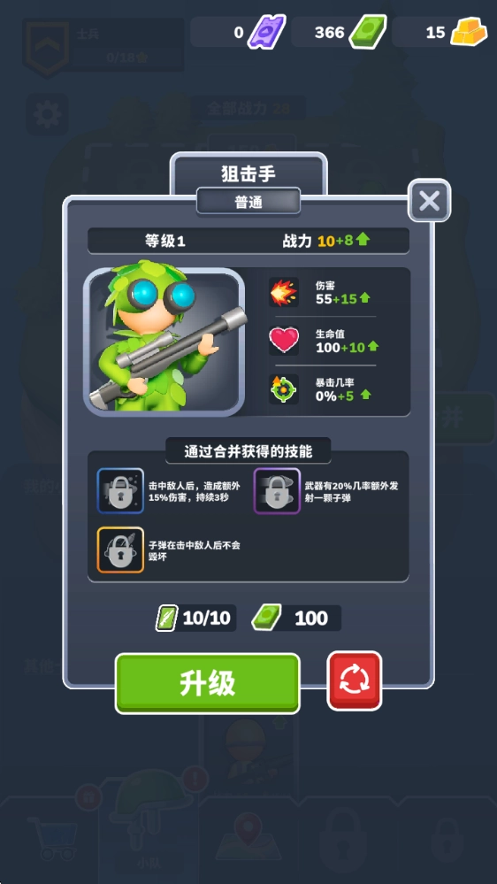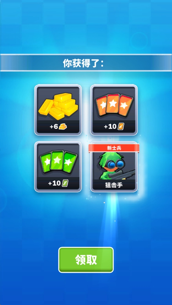 1、花费闯关获得的钞票开包,获得材料和全新的士兵。