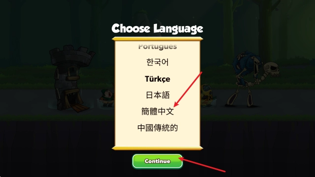 3、选择简体中文后,点击continue后,重载游戏即可。