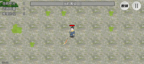 4、玩家需操纵角色移动,来使自动旋转的飞刀攻击敌人;