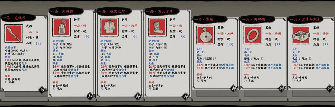 内功:扇、硬头、软甲、硬靴、三首饰。