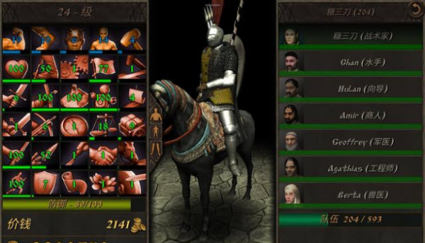 4、雇佣NPC:游戏内共11位npc,可在城镇的酒馆中雇佣。括号内为npc刷新的国家:教练(大宋)、乡绅(镰仓幕府)、向导(蒙古帝国)、射手(英格兰)、军医(法兰西)、水手(挪威)、商人(鲁姆苏丹)、战术家(罗马)、兽医(波兰),剑术大师(拉杰普联)和工程师(拜占庭)。