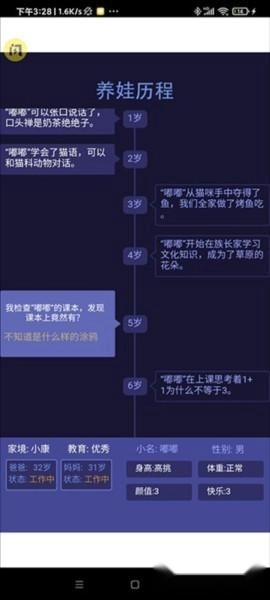 3.成长记录:游戏会自动记录孩子的成长历程,包括身高、体重、学习成绩等,玩家可以随时查看和回顾哦。