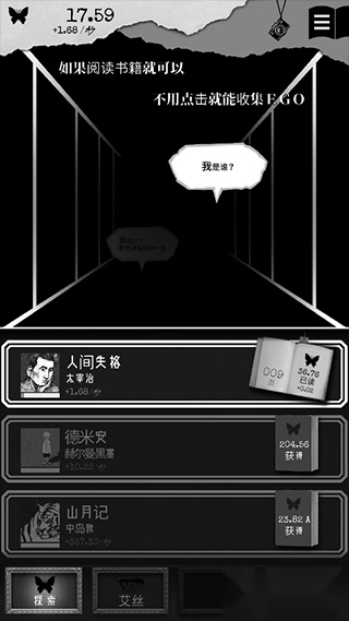 此时玩家可以阅读书籍或是继续点击白色对话框来收集更多的ego,收集成功后就可解锁更多的著作了