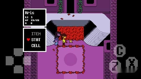 从跌落的位置朝右边的门走去,进去后会碰到一朵花,它的名字就叫花儿。它知道你刚到地下,对一切都很迷茫,于是打算把这里居民的生活情况告诉你,还会向你解释心形的作用。