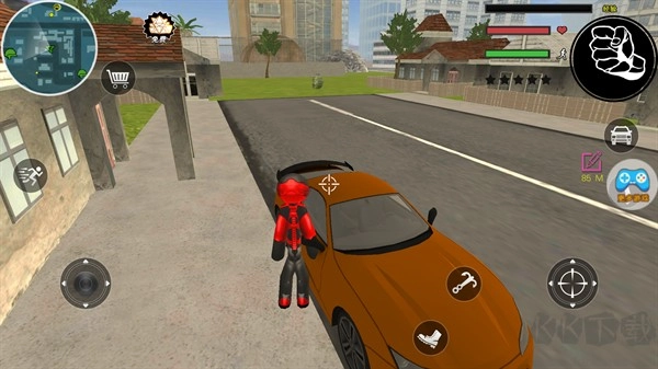4、靠近车辆时,点击超级脚可将其踢飞,体验蜘蛛侠的强大力量。