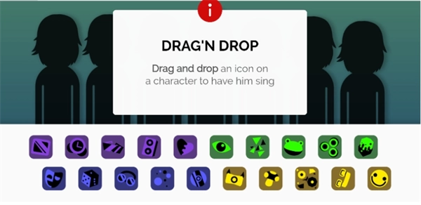 初入游戏后点击屏幕下方中间的开始进入创作模式,从右侧面板选择不同的角色或装饰物拖拽到中央角色区即可试音,向下滑动角色或点击静音按钮可停止播放,长按角色可让其单独演奏,达成特定节奏组合后可触发隐藏动画或彩蛋。