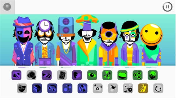 奥伦是头戴耳机和两根天线、时不时露出微笑并发出有节奏鼓点声的DJ角色,Raddy是全身上下红色、皱着眉且发出与奥伦不同鼓声的角色,Clukr是头上长带天线银色镲、演奏时盯着镲并左右晃身体发声的角色,Funbot是拥有灰色皮肤、黄色眼堂和天线、可同时发出两种节奏的机器人角色,维内利亚是长墨绿色尖角、头上长满开花藤蔓且发出类似沙锤声音的小女孩角色,莱姆是浑身柠檬绿、一个眼睛大一个眼睛小、头发尖尖且发出架子鼓中镲的声音、每次发声表情异常搞笑的角色,小天是天蓝色长呆毛且发出的声音好听、深受玩家喜爱的小熊角色。