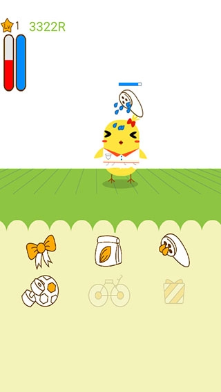 2、这就是你可爱的小鸡仔,左上角显示为等级,底部蝴蝶结图标可以为它装扮。