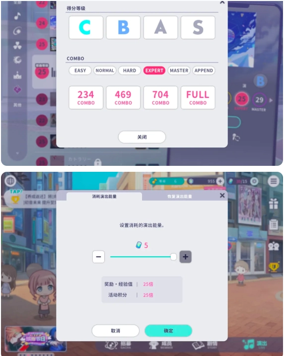 在当期活动开始后,打歌可获得活动徽章和活动积分,后者达到一定数量可解锁活动剧情。