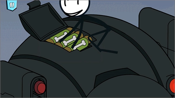 4、要是玩家没能完成五角星,就会被关进监狱。火柴人在监狱里越狱后进入了机器人设备室,此时玩家可以选择打包机器人,也可以选择怼人鸭。