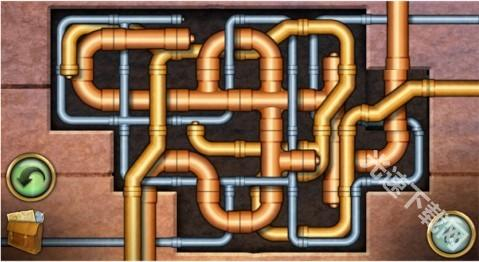 进入暗门后用斧子割断绳子得到梯子。玩旁边的接水管游戏,接通水源。
