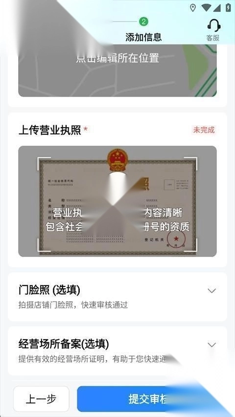 商家需上传店铺的门头照片与营业执照。门头照片建议现场拍摄,这能提升审核通过的概率。营业执照是核实店铺真实性的关键文件,请务必保证上传的是清晰且有效的营业执照副本。