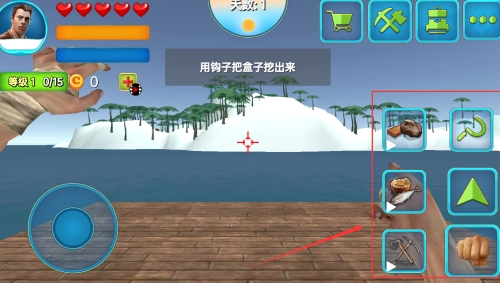 3、使用钩爪捕捉必要的资源,例如海上的碎片、藻类、箱子和其他物品,这些收集到的材料将对您的生存与发展起到关键作用。