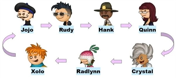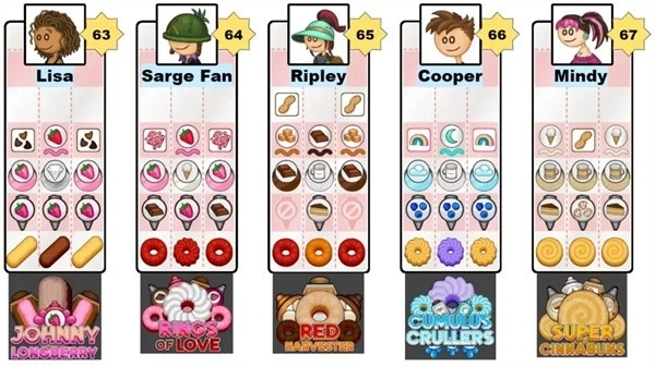 按照“最后一位顾客(closer)”的顺序表(见下图)来明确两人到来的日期,在抵达该日期后,先暂停进入顾客信息界面,查看这位顾客的点单详情,接着提前把面包炸好,等接到第六位顾客的订单后立刻开始制作,制作完成后再接单并马上提交,遵循这个流程就能达成对应的成就。