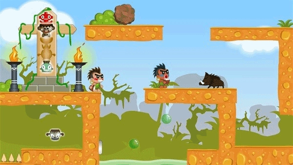 《屁王兄弟》是一款趣味十足又充满挑战的双人冒险游戏。游戏里,玩家将化身杰克与东尼这对拥有“放屁飞行”超能力的原始人兄弟,踏上找回村庄失窃神秘图腾的冒险之旅。旅途中会遭遇形形色色的难题,快来化身无畏的“臭屁勇士”,用智慧解决困境,一路向前吧!