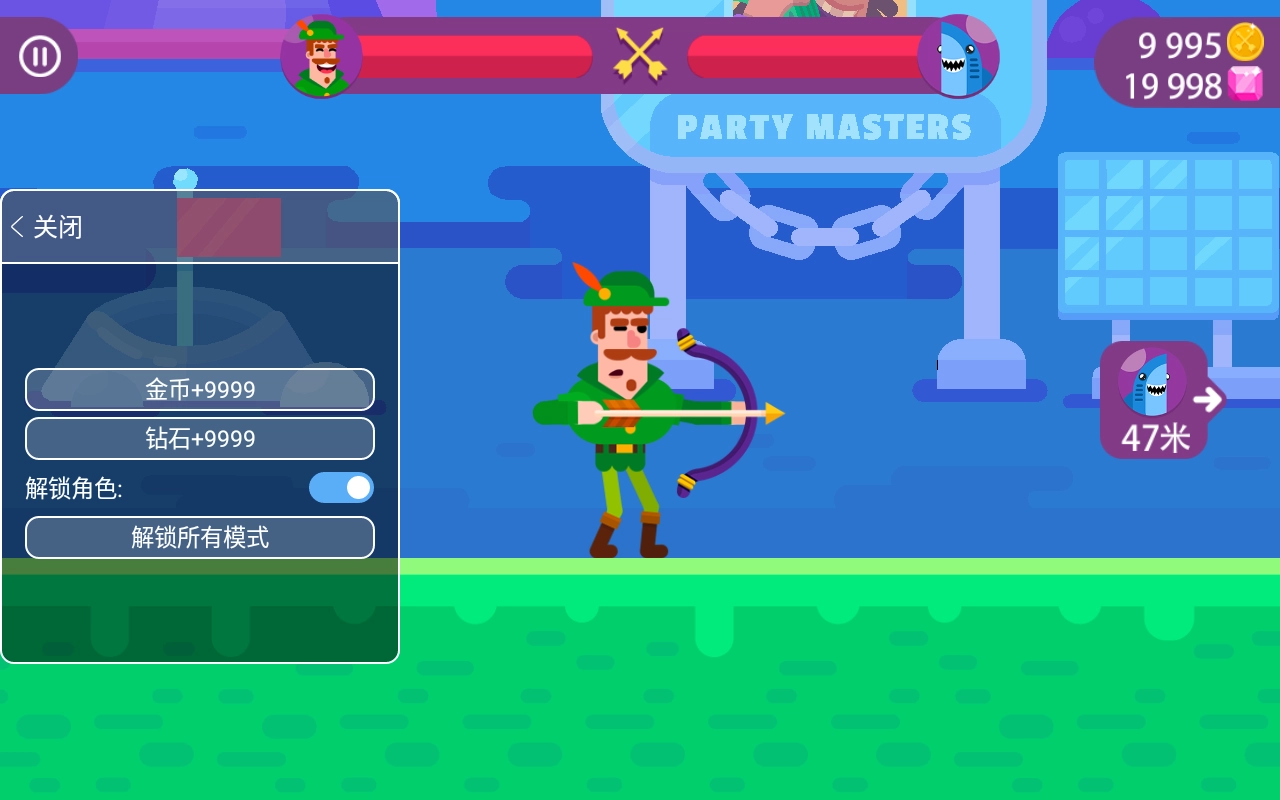 《Bowmasters中文版》是一款创意十足且富有挑战的射击冒险闯关游戏。在这款游戏里,玩家可以选择的角色非常多,每个角色所使用的攻击道具都各不相同。游戏的玩法十分简单,玩家只需想尽各种办法将敌人消灭就能完成目标,感兴趣的小伙伴们赶紧来体验一下吧。