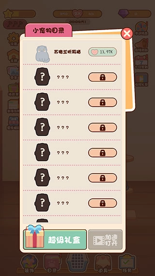4、已解锁的宠物会显示在目录中,用爱心购买更高级的猫咪,能够减少合成所需的步骤。