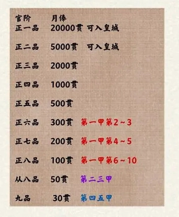 1、科举试题图表&官阶月俸