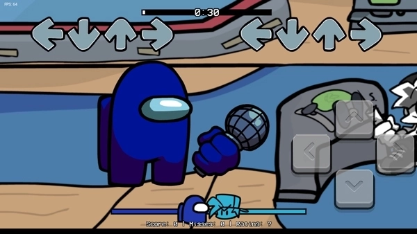 左下角的方向键是打击按键,进入音乐对局后,方向箭头会从屏幕下方慢慢向上移动。当下方移动的箭头与上方固定的箭头重合时,玩家需要按下屏幕上对应的方向键,这样就能获得分数。